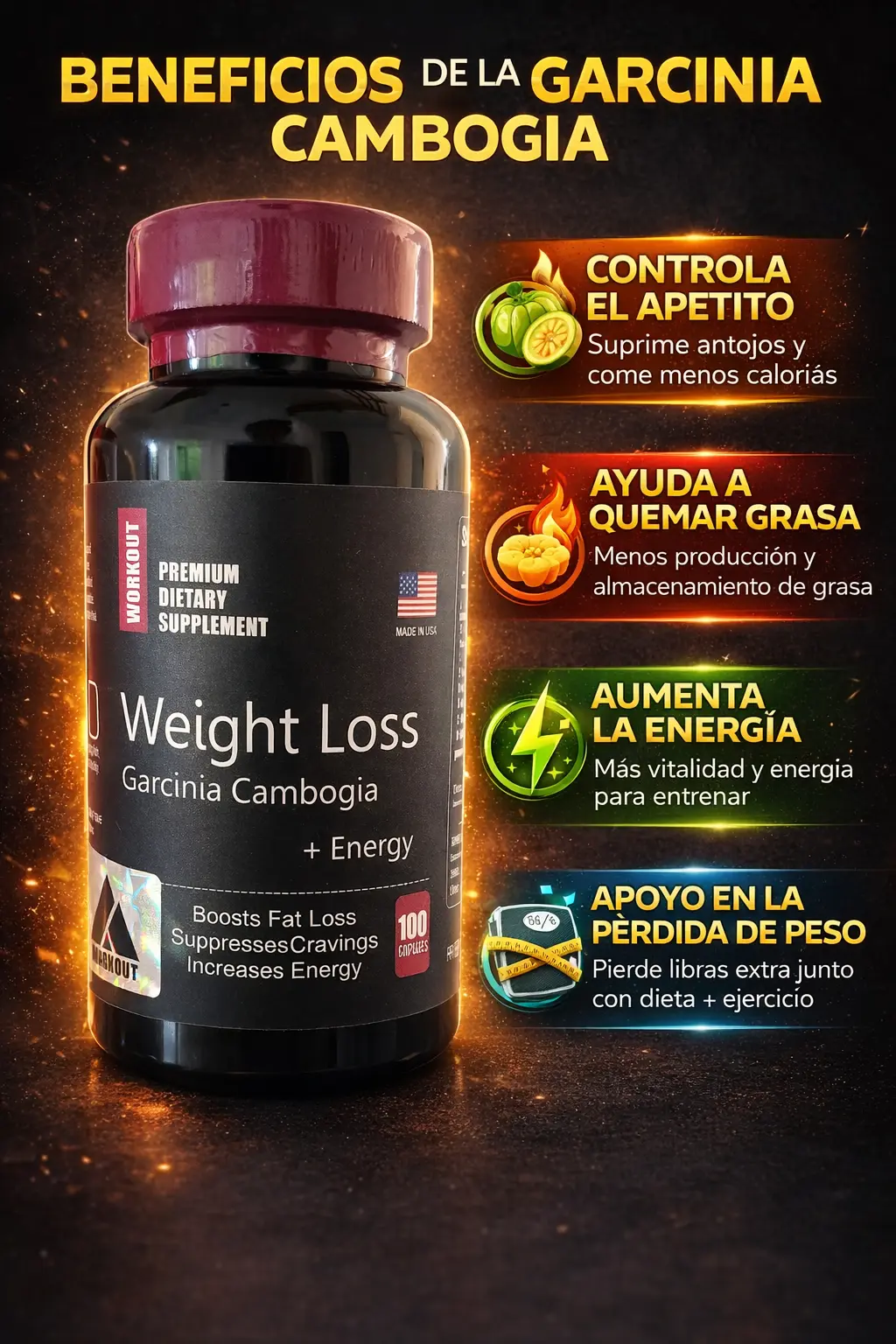 ¿Buscas un impulso natural para alcanzar tu peso ideal sin recurrir a estimulantes agresivos? La Garcinia Cambogia Workout es un extracto frutal reconocido mundialmente por su alto contenido de Ácido Hidroxicítrico (HCA). Este compuesto actúa directamente en el metabolismo de las grasas y en el control del apetito, facilitando un estilo de vida saludable. Por lo tanto, si quieres transformar la manera en que tu cuerpo gestiona la energía y reducir la ansiedad por comer, este suplemento es tu compañero de entrenamiento perfecto.