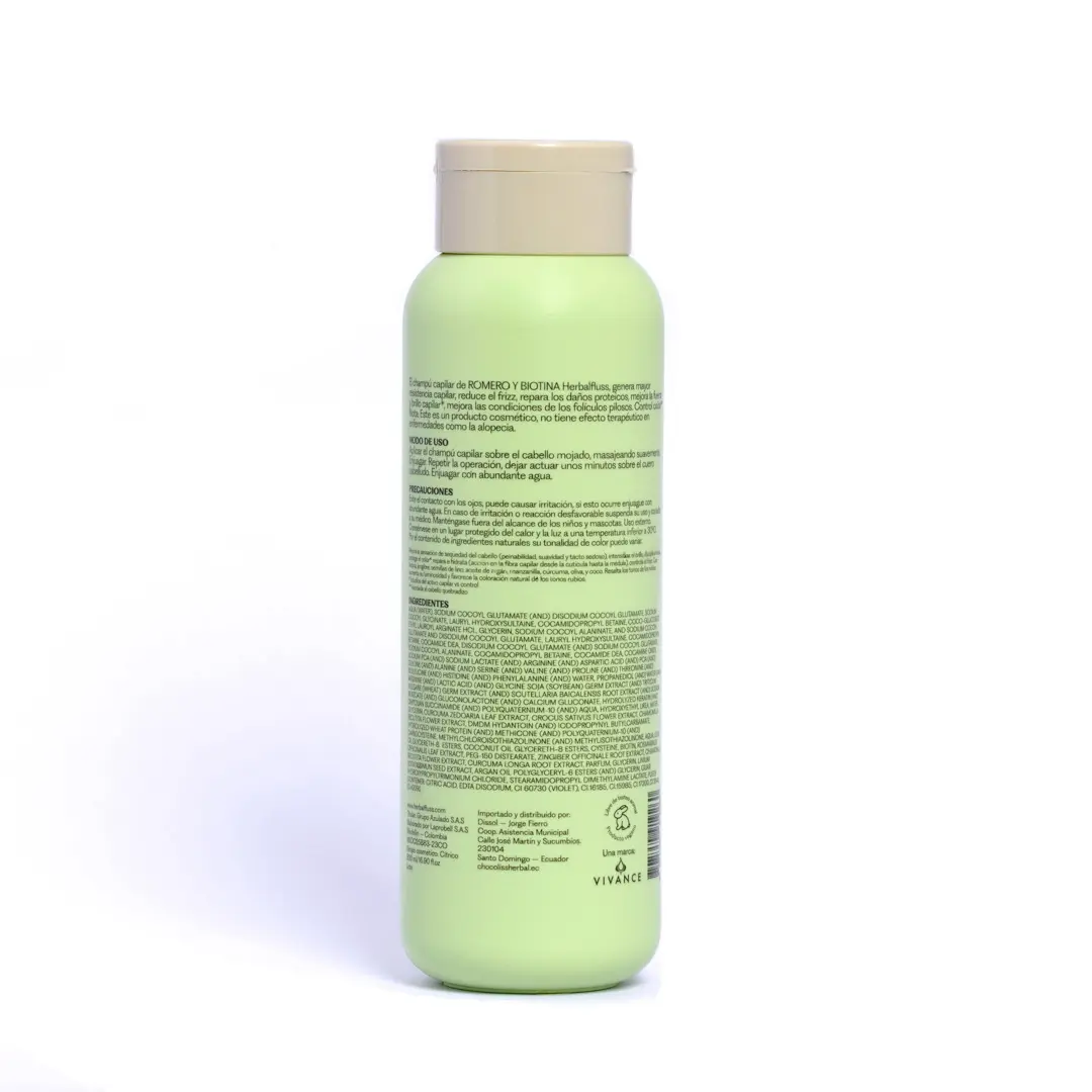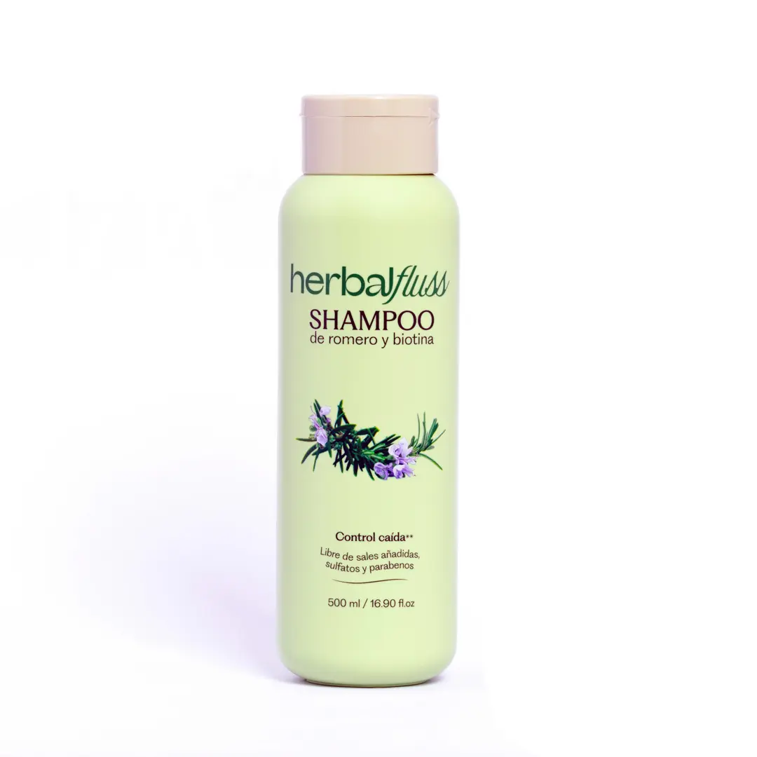 ¿Sueñas con un cabello que luzca visiblemente más fuerte, brillante y sin frizz, pero te preocupa el daño de los sulfatos? ¡La solución detox para tu cabello ha llegado! Nuestro HERBALFLUSS Shampoo de Romero y Biotina es una fórmula 98% natural [info provided] que limpia suavemente con Tensoactivos de Coco (reemplazo de sulfatos) [info provided]. Por lo tanto, si buscas un control efectivo de la caída, reparación proteica y una melena radiante, este shampoo es el cambio que necesitas.
