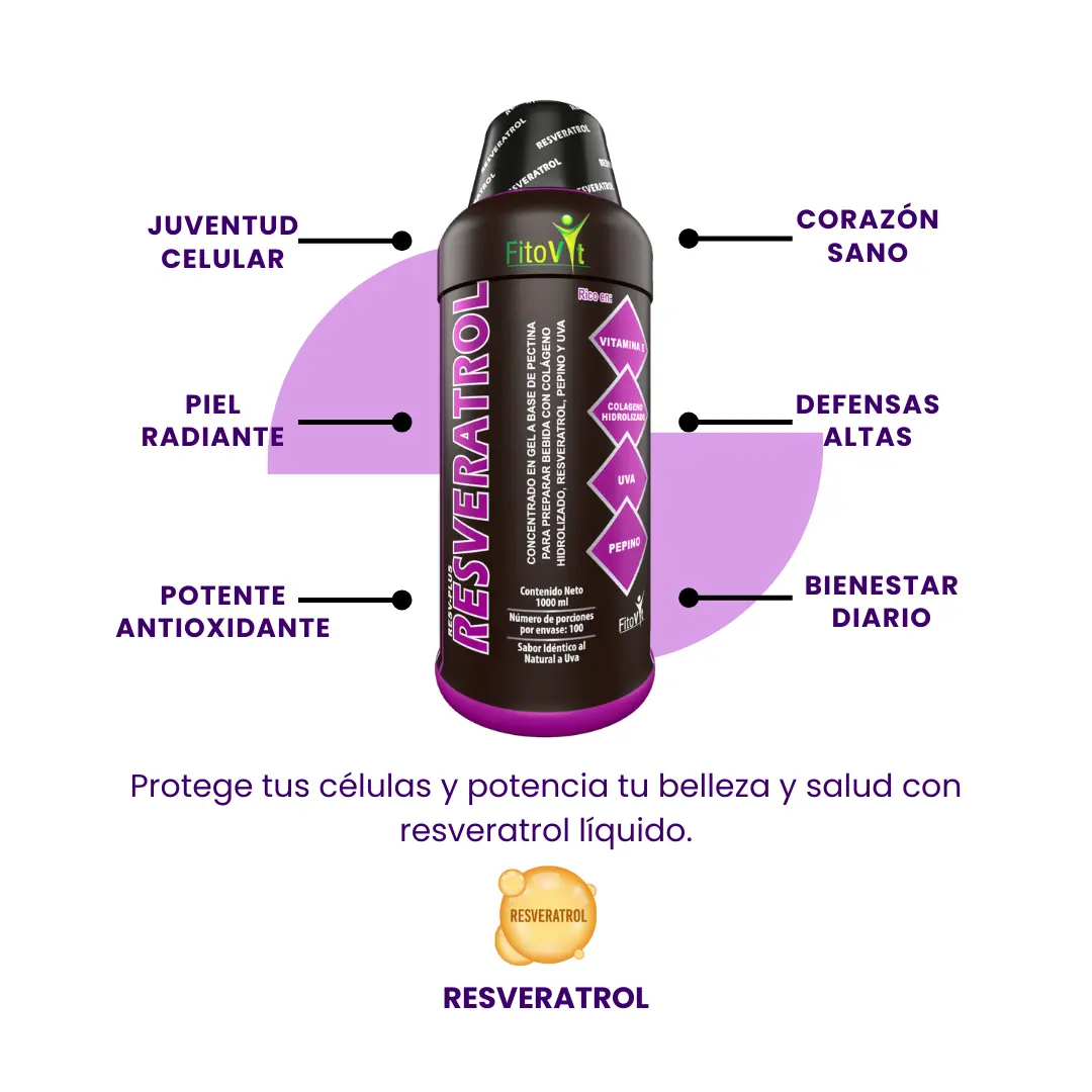 ¿Sueñas con un método natural y delicioso para combatir el envejecimiento, revitalizar tu piel y proteger tu corazón? ¡Finalmente, la ciencia de la longevidad llega a tu mesa! Nuestro Resveratrol Concentrado FitoVit es un poderoso shot diario que combina la fuerza antioxidante del Resveratrol (2.0%) con la elasticidad del Colágeno Hidrolizado (2.0%). Por lo tanto, obtienes una fórmula funcional concentrada con antioxidantes y colágeno para una belleza y salud profundas.